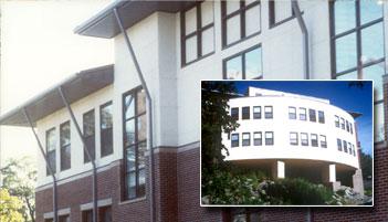 Installation of 35,000sf office and health care facility on sloping ledge. Drill/blast 10,000cy rock, foundation grade beams, structural steel/masonry assembly. Design/build all interior systems. Semi-circular architecture with 60' overhang provides a dramatic feature with main entrance on the high side.