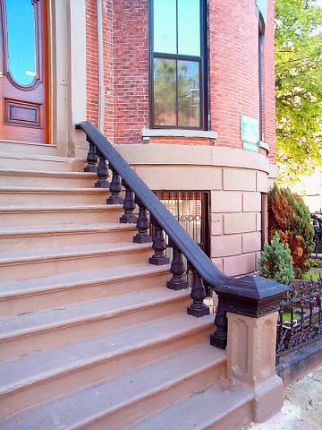 Renovation and reconstruction of 5-story Brownstone Residence into 6-unit condominiums including roof decks, rear patio and masonry repoint and repair, new windows, floors, and all interior high-end conversion. New HVAC, Electric, Plumbing, Roof, Gutters and Stairway Entry in Limestone. Treatment for historical restorations and reproduction including new hardwood front door and period hardware.
