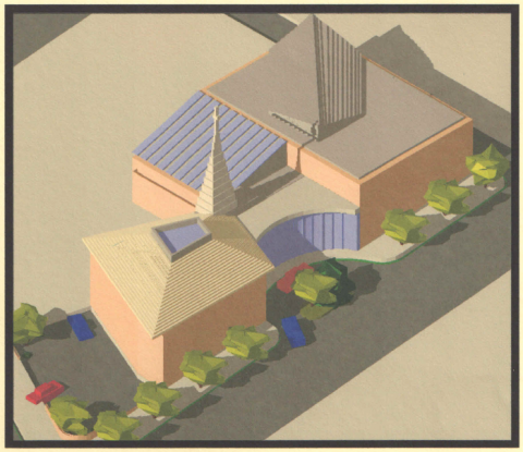 Design-Build proposal for the rehabilitation of 14,000 square feet of the existing building and three phases of new construction totaling 16,000 square feet. New construction includes a new entrance lobby, a classroom wing around a skylight atrium, a multi-purpose facility, garage parking, administrative offices and a new steeple.